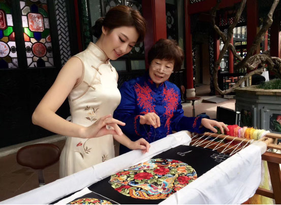广绣庄非遗传承人阮贤娥拍摄佛山电视台城市形象大片