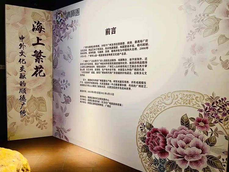 2021年3月5日,《海上繁花——中西文化交融的顺德广绣》在顺德清晖园博物馆正式开幕。
